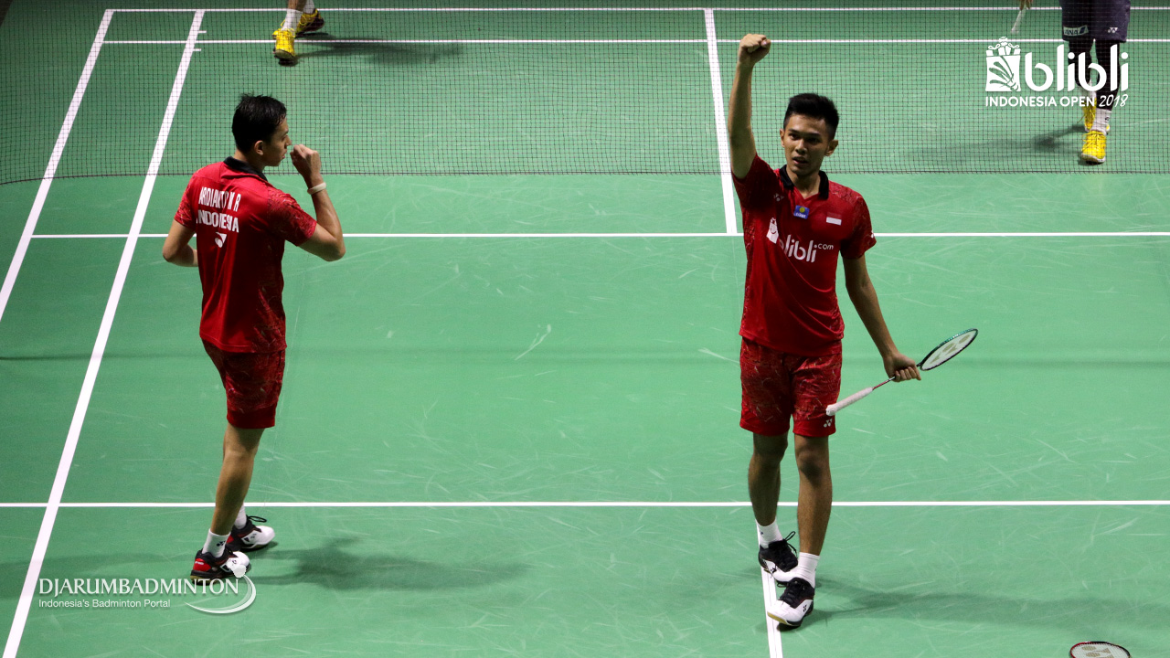 Selebrasi kemenangan Fajar Alfian/Muhammad Rian Ardianto (INA)
