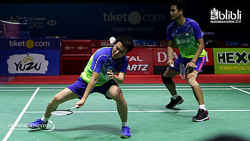 Yuki Fukushima/Sayaka Hirota (JPN) menyambar pengembalian.