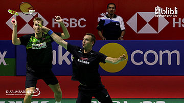 Mads Conrad-Petersen/Mads Pieler Kolding (DEN) menyambut pengembalian.