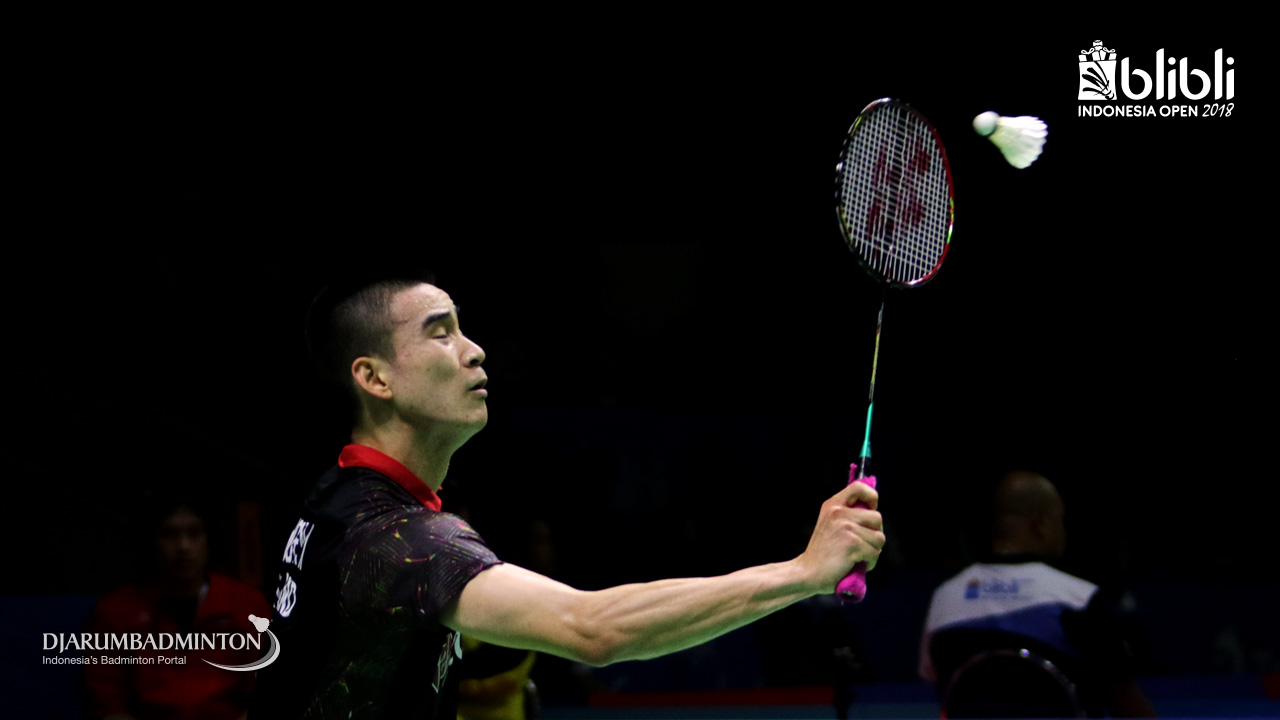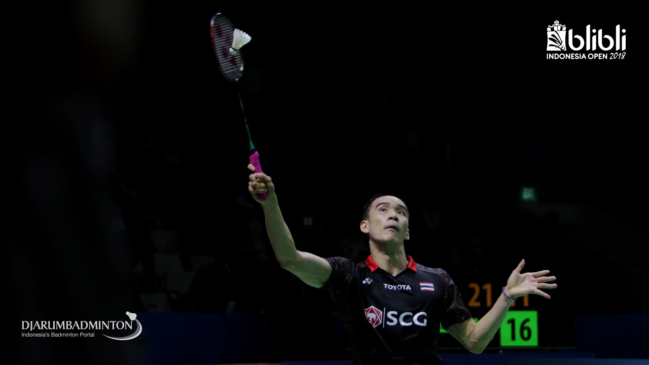 Kantaphon Wangcharoen (THA) mengembalikan shuttlecock.