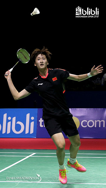 Chen Yufei (CHN) menghadang serangan