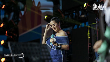Raisa ikut memeriahkan gelaran BLIBLI Indonesia Open 2018