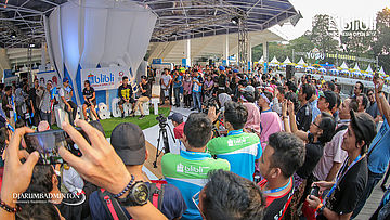 Suasana meet and greet Gregoria Mariska TUNJUNG dan Anthony Sinisuka GINTING (Indonesia) di booth BLIBLI