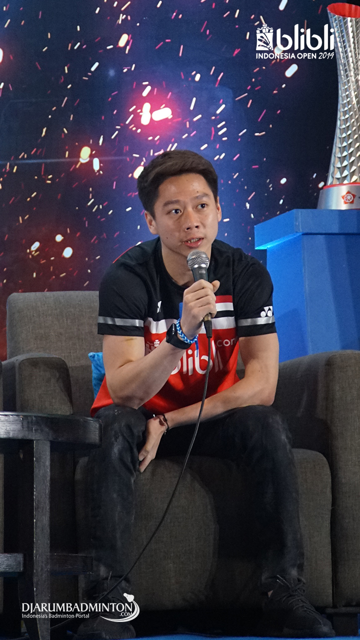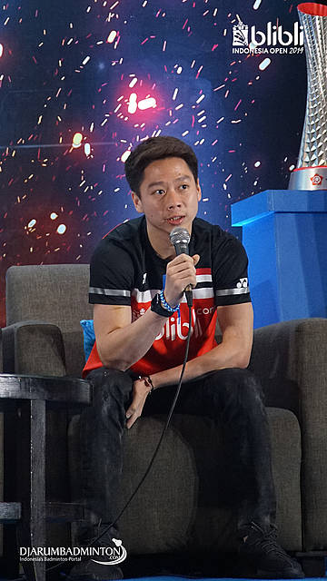 Kevin Sanjaya Sukamuljo saat memberikan keterangan pers