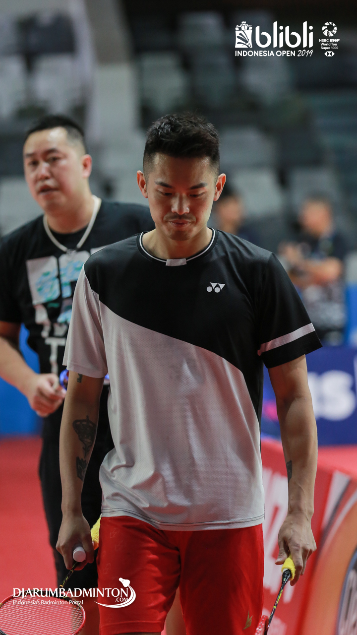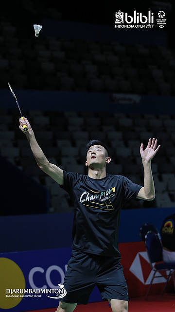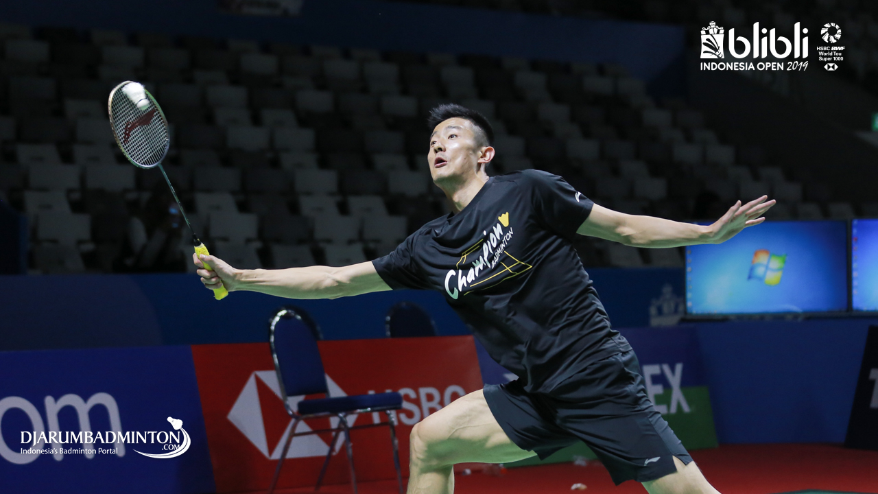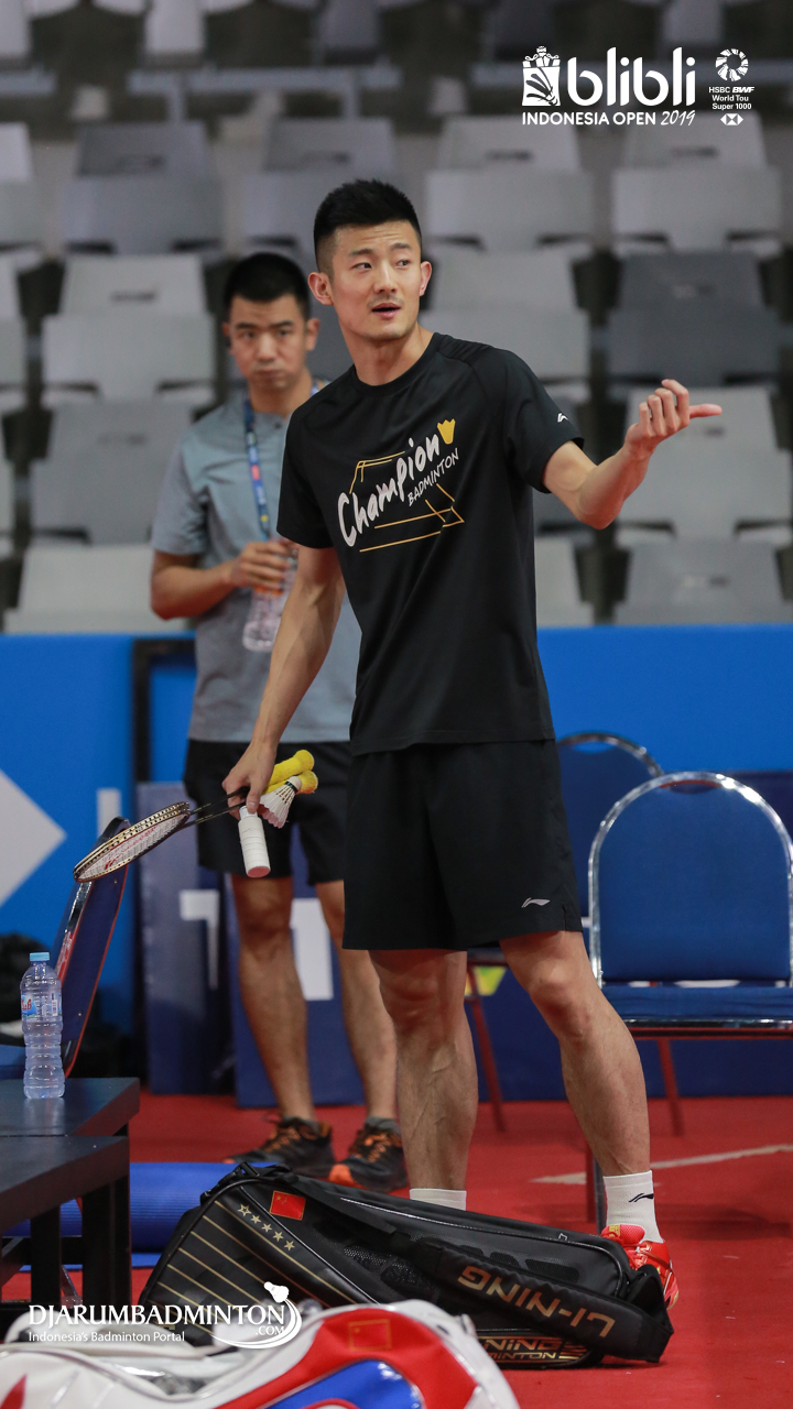 CHEN Long (China) saat melakukan sesi latihan di Istora senayan