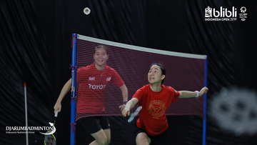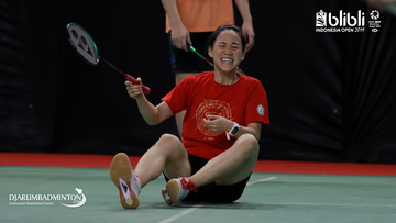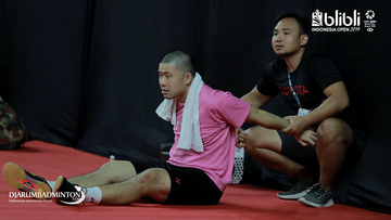 Nitchaon JINDAPOL (Thailand) sedang melakukan latihan di Istora