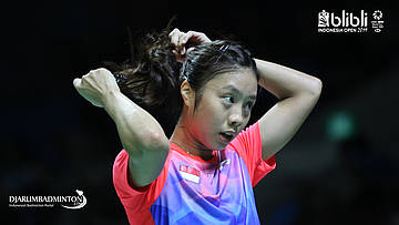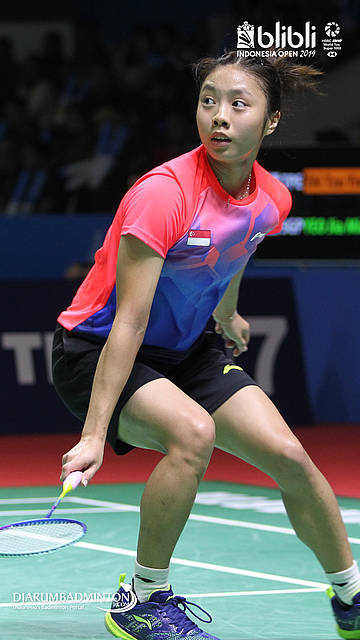 YEO Jia Min (Singapore) menyambut shuttlecock