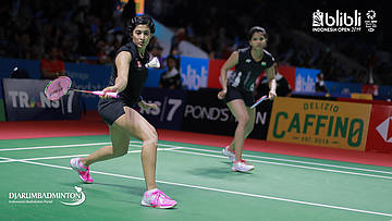 Ashwini PONNAPPA/REDDY N. Sikki (India) mengembalikan shuttlecock