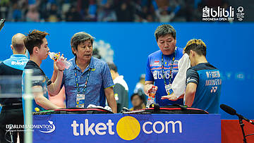 Kevin Sanjaya SUKAMULJO (Indonesia) mengembalikan serangan