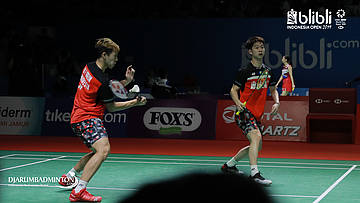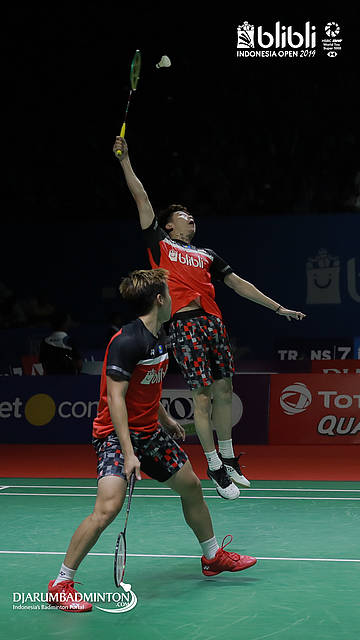 Marcus Fernaldi GIDEON/Kevin Sanjaya SUKAMULJO (Indonesia) melakukan perotes