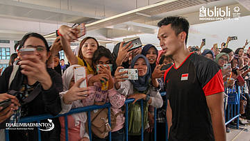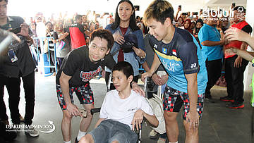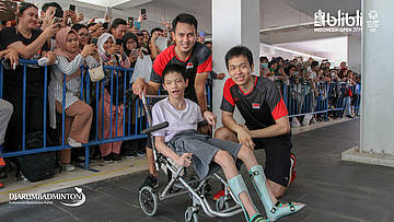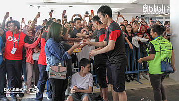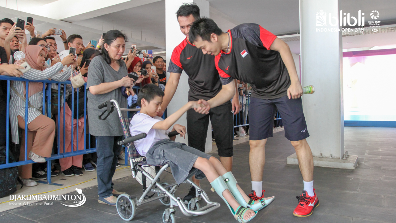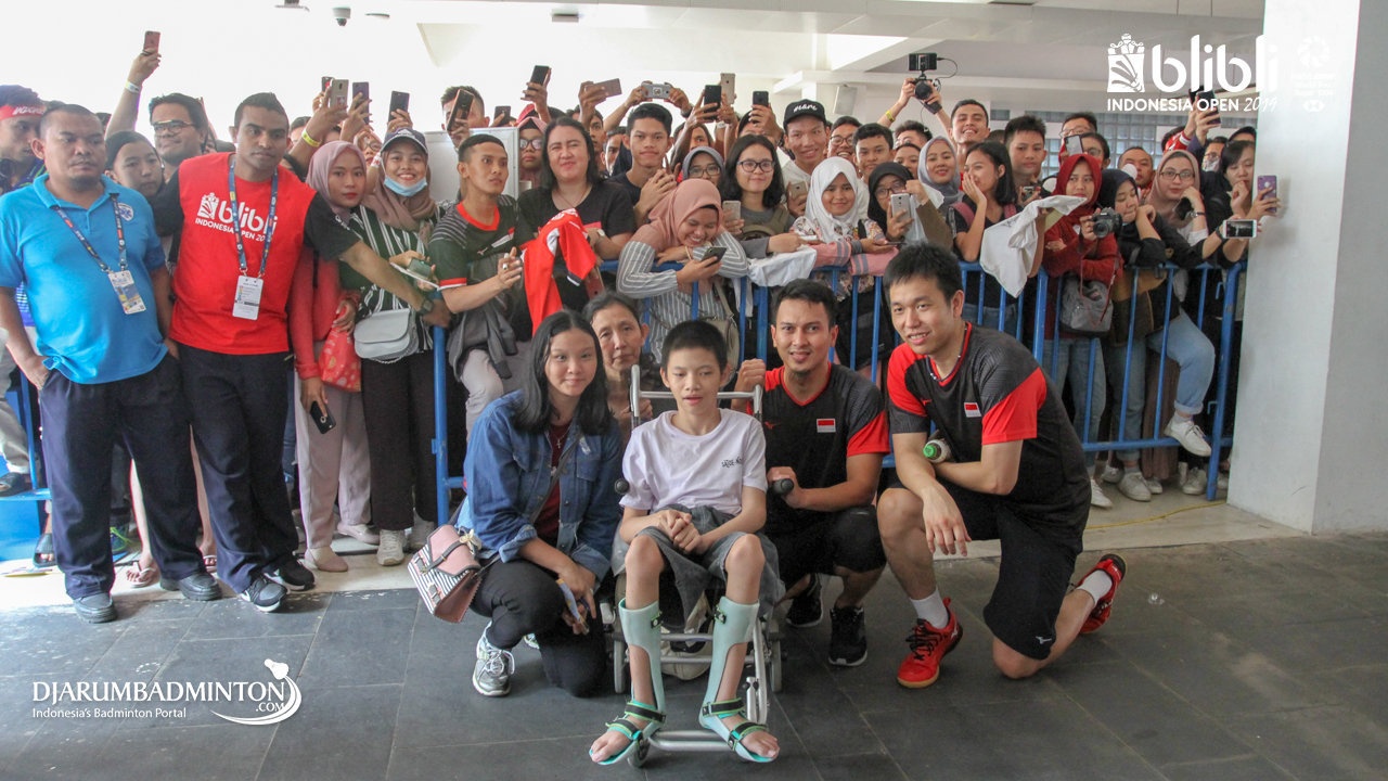 Para suporter sedang meminta tanda tangan kepada ahsan & hendra