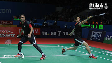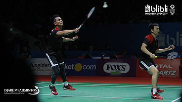 Mohammad AHSAN/Hendra SETIAWAN (Indonesia) di Pertandingan Semifinals BIO 2019