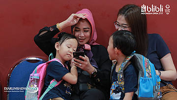 Istri M Ahsan dan istri & anak Hendra Setiawan di Players Services