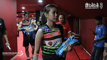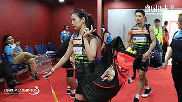 Goh Liu Ying dan Chan Peng Soon (MAS) sebelum masuk ke arena pertandingan