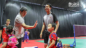 Hendra Setiawan bersama anak-anaknya di Warming Up Hall