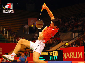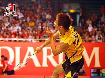 Lee Chong Wei menghantan lawan dengan kekuatan penuh