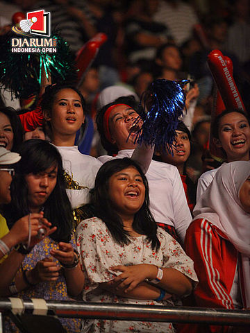 Suporter setia badminton bergaya di Planet Badminton dengan kostum