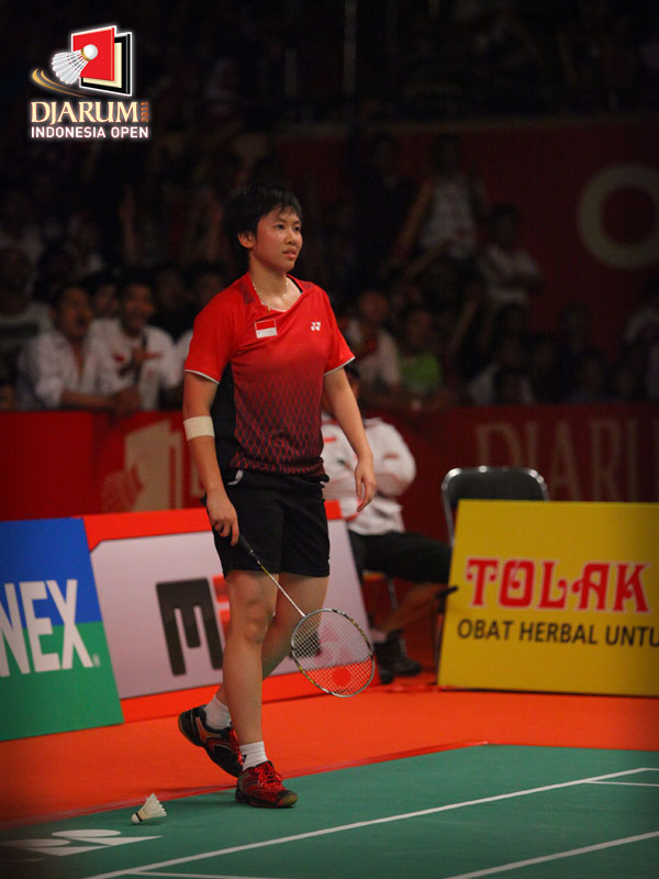 Wang Yihan konsentrasi datangnya kok
