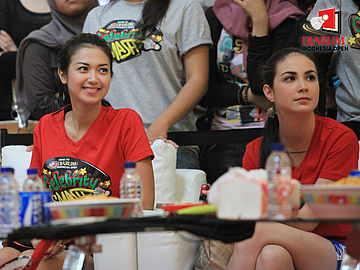 Arumi tampak serius memperhatikan pertandingan berbeda dengan Sylvia