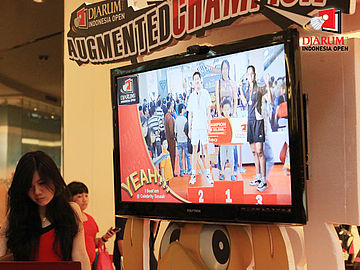 Tampilan di monitor ketikan pengunjung berpose di Photo Booth Augmented Champion.