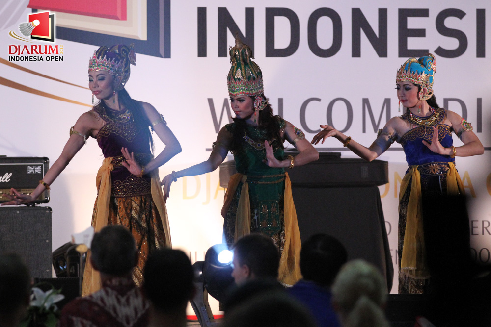 Tarian Jawa tersaji dalam Welcome Dinner Djarum Indonesia Open 2012 di Hotel Sultan, Jakarta.