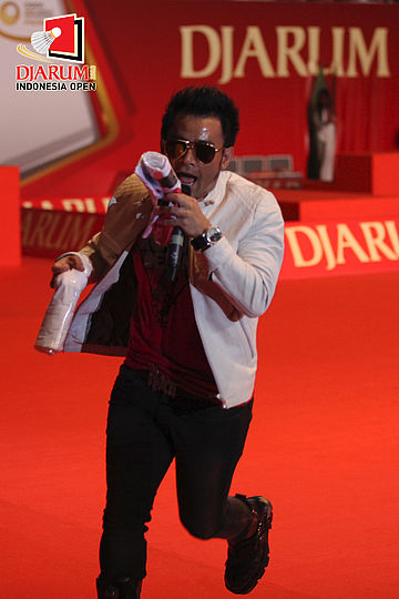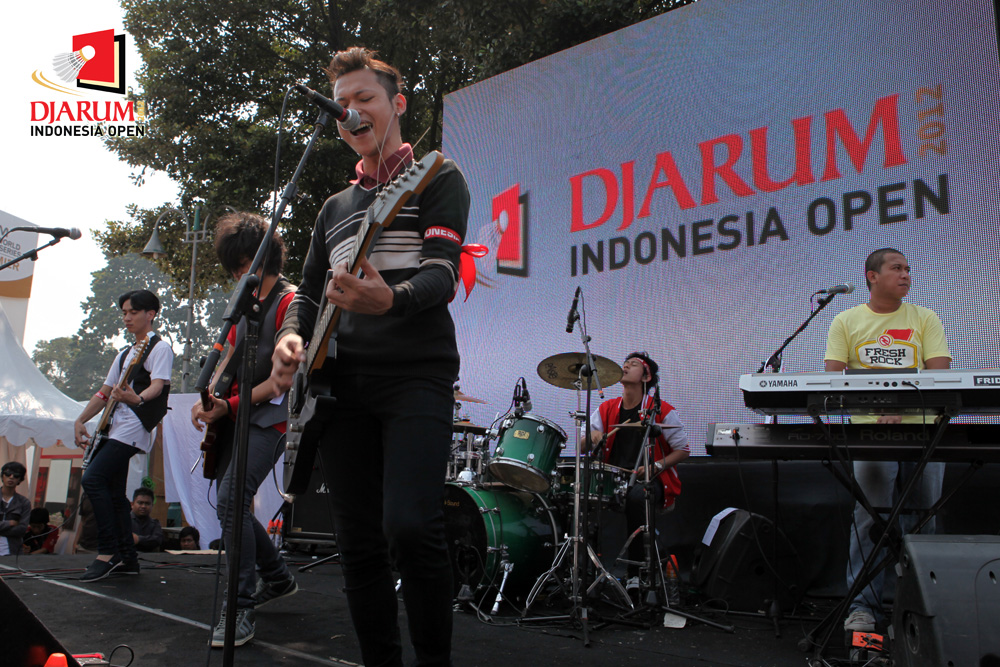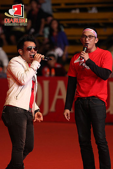 Judika menghibur penonton yang menyaksikan babak semifinal Djarum Indonesia Open 2012.