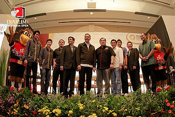 Maskot DIO meramaikan press conference Djarum Indonesia Open Super Series Premier 2013