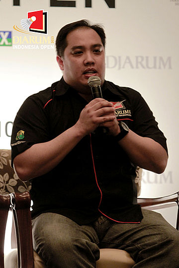 Gita Wirjawan ketua umum PB PBSI, saat menjawab pertanyaan rekan media.