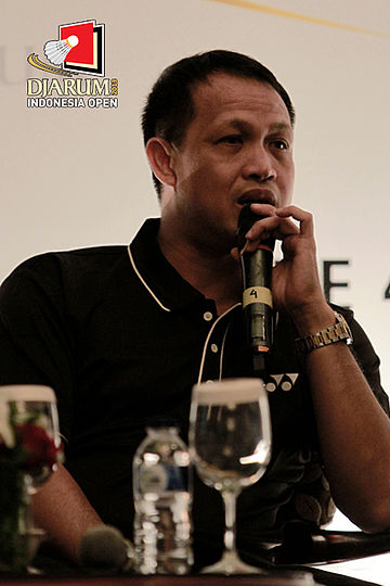 Rexy Mainaky saat menjawab pertanyaan dari rekan media.