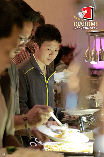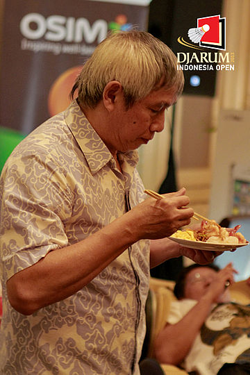 Christian Hadinata sedang menikmati jamuan makan siang.