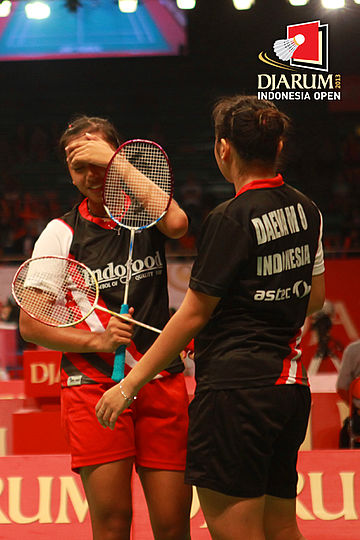 Melati Daeva dan Rosyita Eka (Indonesia) saat saling memberikan motivasi.