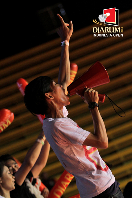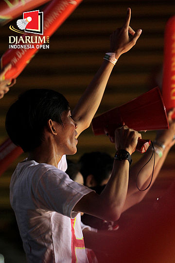 Salah satu suporter meneriakan dukungannya untuk para pemain Indonesia yang tengah bertanding.