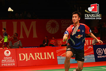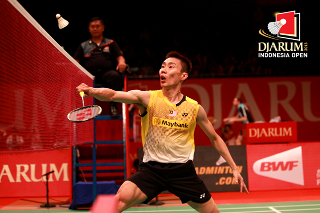 Lee Chong Wei (Malaysia) berhasil memenangkan duel netting dengan Wang Zhengming (China).