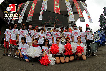 Salah satu peserta "Teriakkan Dukunganmu" berpose di depan booth PB Djarum.