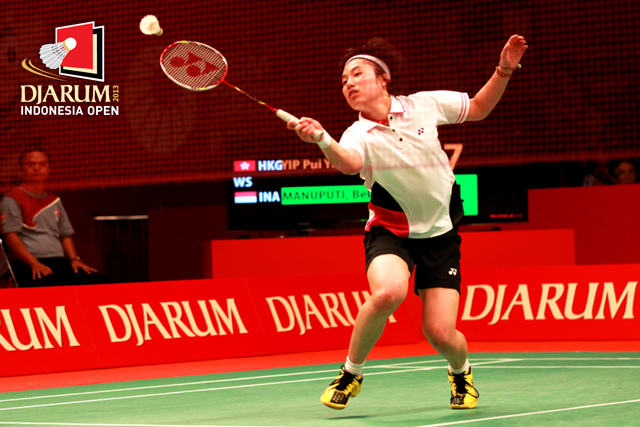 Yip Pui Yin (Hongkong) menyambut serve dari Belaetrix Manupputy (Indonesia).
