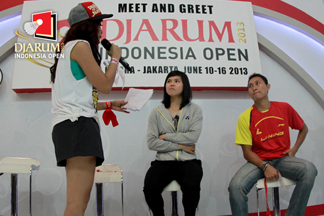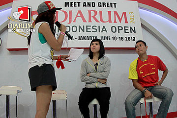 Geysia Polii (tengah) dan Sony Dwi Kuncoro (kanan) saat meet and great di Djarum Lounge.