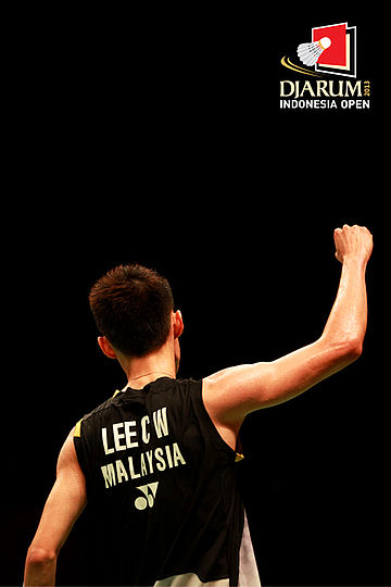 Selebrasi Lee Chong Wei (Malaysia) setelah berhasil mengalahkan Dionysius Hayom Rumbaka (Indonesia) di babak semifinal Djarum Indonesia Open Super Series Premier 2013.