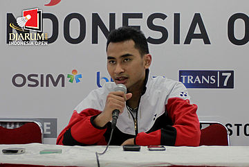 Tommy Sugiarto (Indonesia) saat melakukan press conference.
