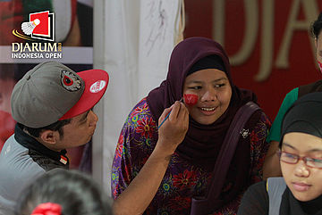 Face painting menjadi salah satu yang paling di minati para pengunjung Djarum Indonesia Open Super Series Premier 2013.