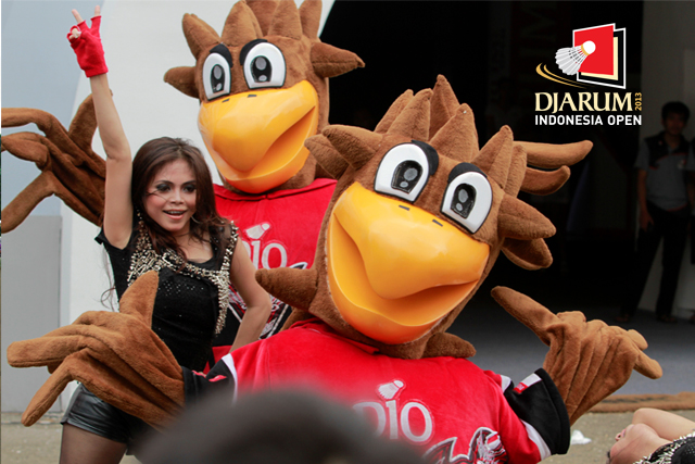 Penampilan salah satu modern dance bersama maskot DIO cukup menarik perhatian sejumlah pengunjung yang hadir di Istora Senayan.