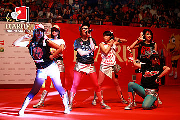 Super Gerlies saat tampil menghibur pengunjung yang memadati Istora Senyan.