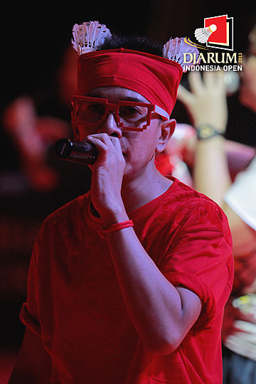 Udjo "Project Pop" saat menghibur ribuan pengunjung yang memadati Istora Senayan.