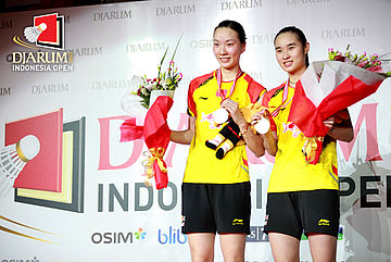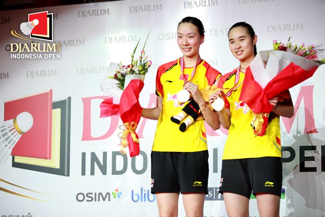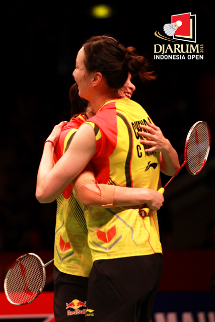 Bao Yixin/Cheng Shu (China) keluar sebagai juara ganda putri di Djarum Indonesia Open Super Series Premier 2013.