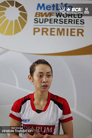 Injury forced Maria Febe Kusumastuti to bow out by Yui Hashimoto in the quarter final of the BCA Indonesia Open Super Series Premier (BIO) 2015. She lost 21-16, 16-21, 20-22 at Senayan sports stadium, Friday, (5/6).