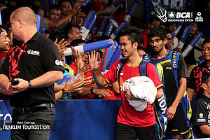 Anthony Sinisuka Ginting's campaign has to stop at the quarter final of the BCA Indonesia Open Super Series Premier (BIO) 2015. She was defeated by a Japanese Singles, Kenta Momota 21-13, 16-21 and 15-21. Despite of the defeat, Anthony claimed he is satisfied with his performance.