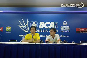 JAKARTA - Young Indonesian men's doubles pair, Fajar Alfian/Muhammad Rian Ardianto, failed to go to the BCA Indonesia Open Superseries Premier 2016 second round after on Wednesday afternoon were stunned by Denmark's pair, Mads Conrad Petersen/Mads Pieler Kolding. Fajar/Rian lost in deuce match,19-21, 21-14, and 25-27.