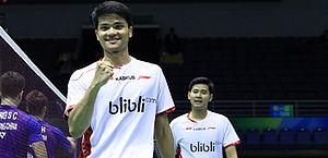 KUNSHAN - Tim Thomas Indonesia mampu memastikan diri merebut tiket semifinal Thomas Cup 2016. Angga Pratama/Ricky Karanda Suwardi yang turun di partai...