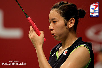 Sayaka Takahashi (JPN) meniup telapak tangan