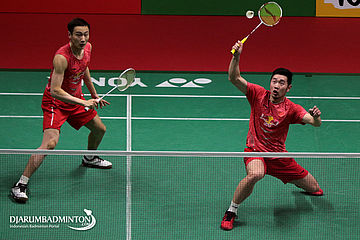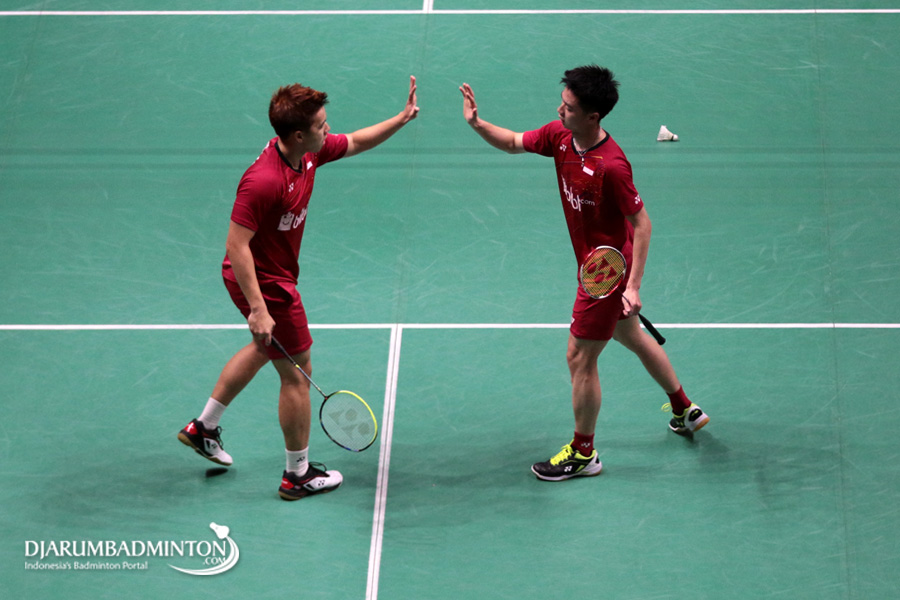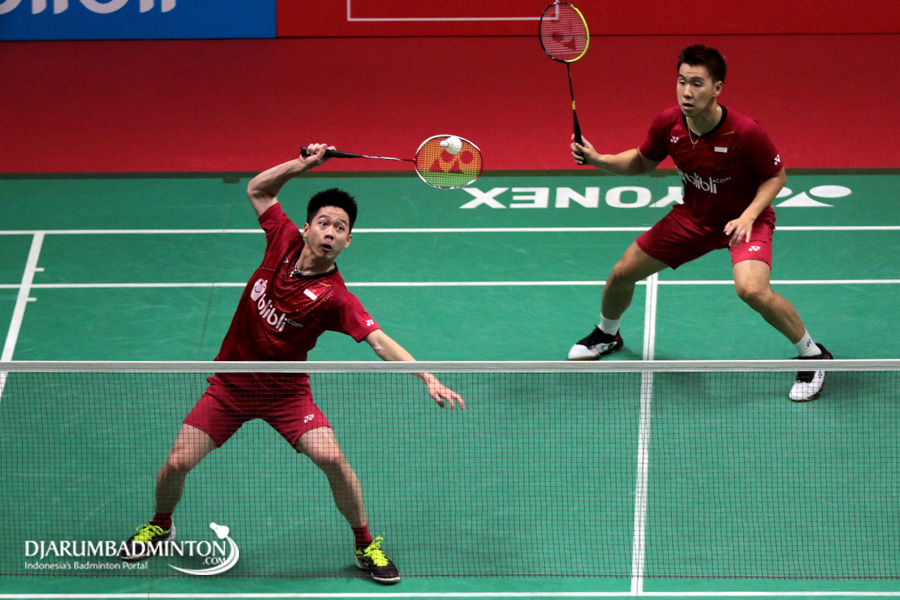Kevin Sanjaya Sukamuljo/Marcus Fernaldi Gideon (Indonesia) Menghadang Pengembalian