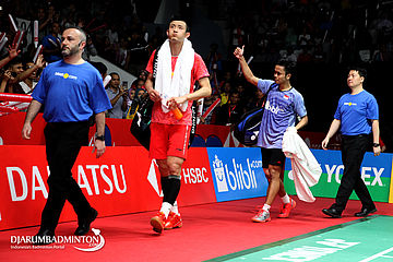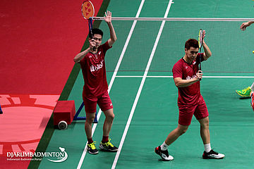 Kevin Sanjaya Sukamuljo/Marcus Fernaldi Gideon (Indonesia) Memberikan Apresiasi Kepada Seluruh Pendukung Yang Memenuhi Istora Senayan